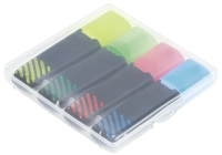 Flüssig-Textmarkerset bestehend aus 4 LIQEO HIGHLIGHTER PEN in einer klar transparenten Kunststoffverpackung. Standardfarben der Textmarker in gelb, grün, magenta und blau. Optional wählbare Textmarkerfarben: orange und violett.