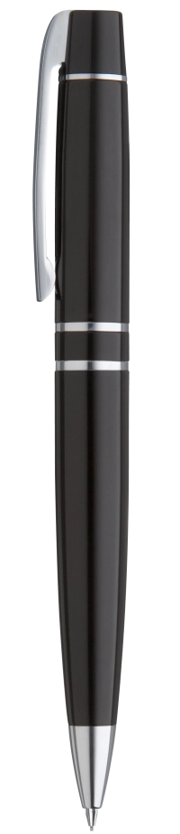 Metall-Rollerball mit gefedertem Clip und schwarzer Gummigriffzone. Beschlagteile glanzverchromt.