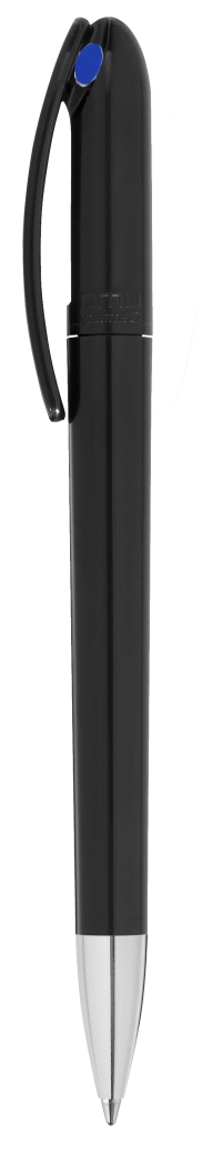 Drehkugelschreiber mit transparent gefrostetem Gehäuse. Schwere matt verchromte Metallspitze.