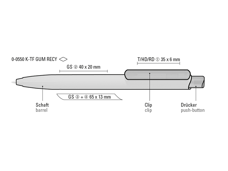 Retractable ballpoint pen with softtouch housing made from recycled ABS plastic and transparent frosted clip and push-button. Integrated grip zone. The model is labelled with the recycling mark. Thanks to the European and ClimatePartner-certified production, the uma STAGE K frozen GUM RECY makes an additional sustainable contribution to the protection of the environment. Due to the special nature of the material (ABS recycled plastic) production-related variations are possible.