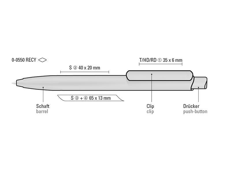 Retractable ballpoint pen with opaque matt housing, clip and push-button made of recycled ABS plastic. Integrated grip zone. The model is labelled with the recycling mark. Thanks to the European and ClimatePartner-certified production, the uma STAGE RECY makes an additional sustainable contribution to the protection of the environment. Due to the special nature of the material (ABS recycled plastic) production-related variations are possible.