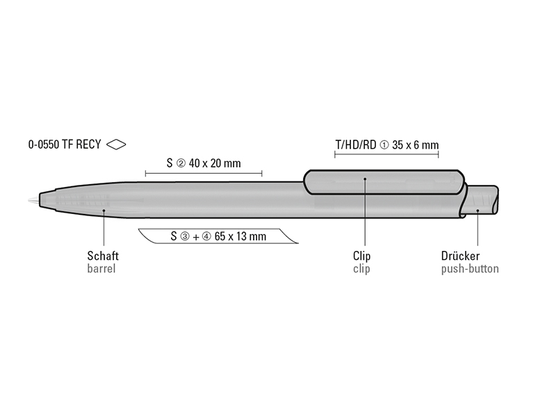 Retractable ballpoint pen with transparent frosted housing, clip and push-button made of recycled ABS plastic. Integrated grip zone. The model is labelled with the recycling mark. Thanks to the European and ClimatePartner-certified production, the uma STAGE frozen RECY makes an additional sustainable contribution to the protection of the environment. Due to the special nature of the material (ABS recycled plastic) production-related variations are possible.
