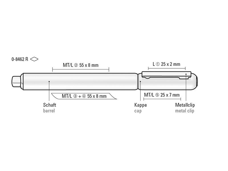 European rollerball refill with stainless steel writing tip and ceramic-carbide ball (0.7 mm). Writing capacity: approx. 800 m. German writing paste. Made in Germany. The uma rollerball lead does not dry out immediately even when the cap is removed. That is why we certify an extra long "cap-off"-time.