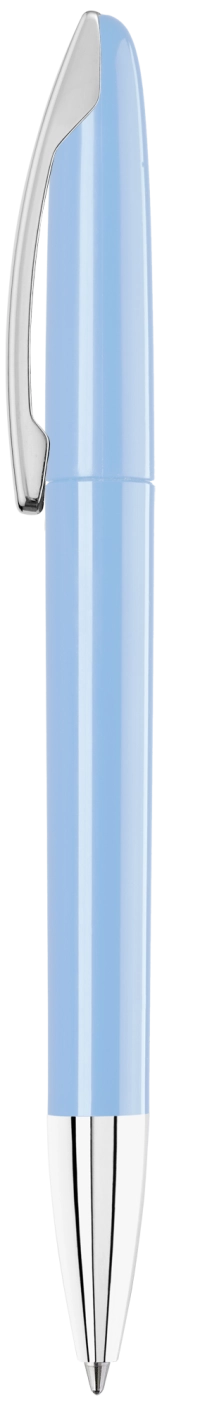 Stylo bille à rotation avec corps caoutchouteux, clip en métal et pointe chromés brillants.