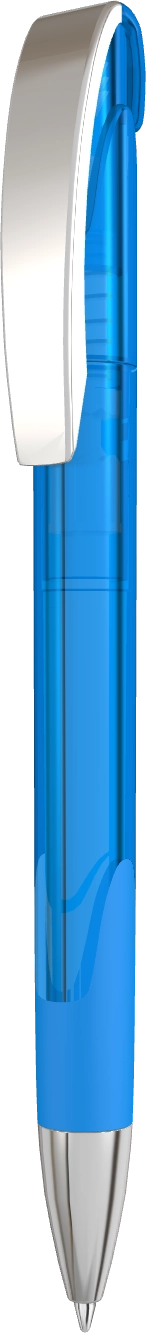 Stylo bille rétractable avec corps opaque brillant, grip caoutchouc et lourde pointe en métal brillant.