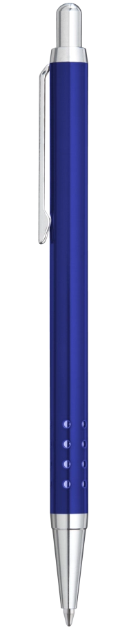 Stylo bille rétractable en métal avec grip caoutchouc perforé. Attributs chromés brillants. Bouton avec doming personnalisable.