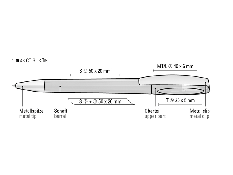 Stylo bille à rotation avec corps transparent brillant. Pointe lourde en métal, chromé mat et clip en métal.